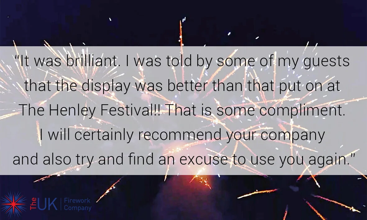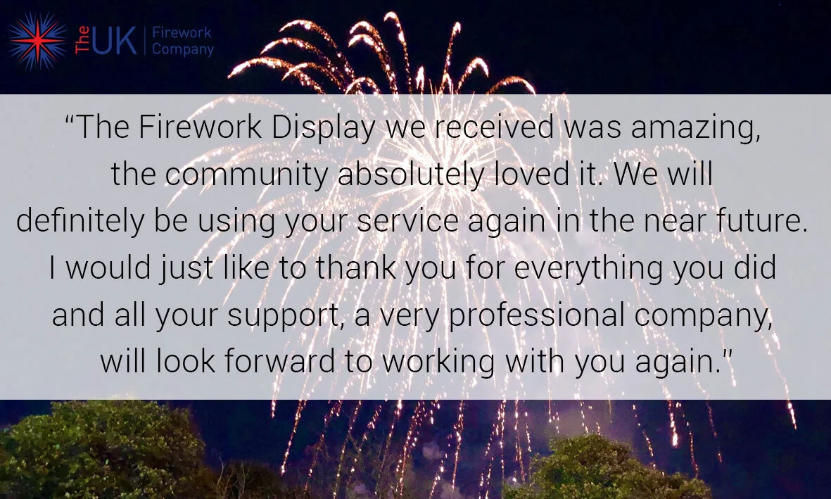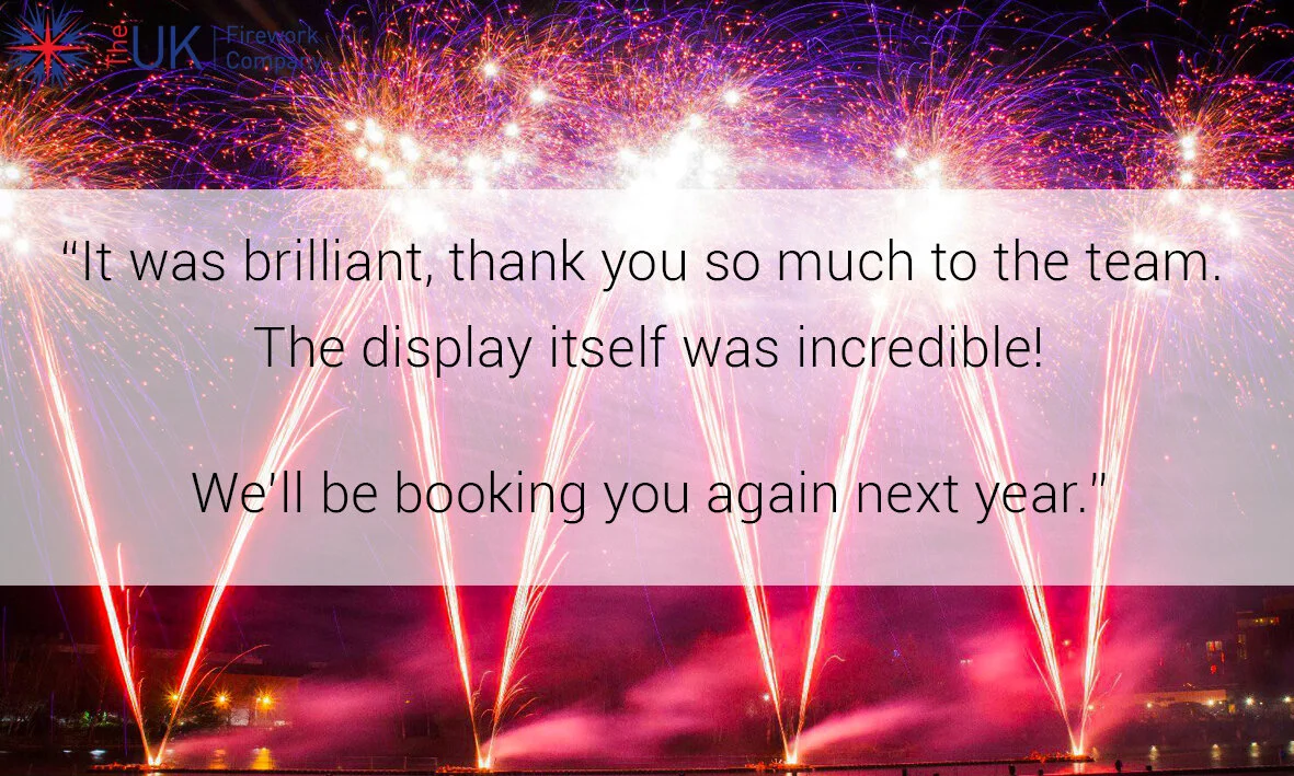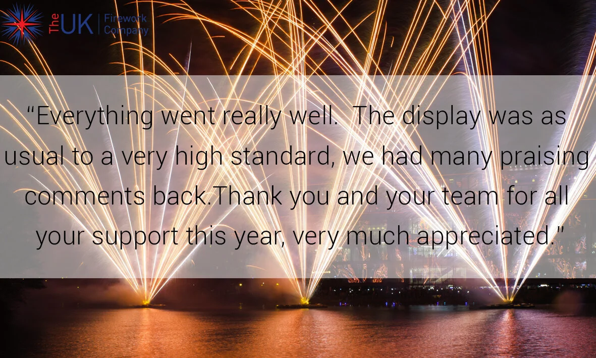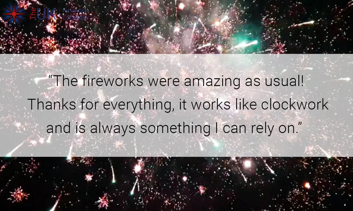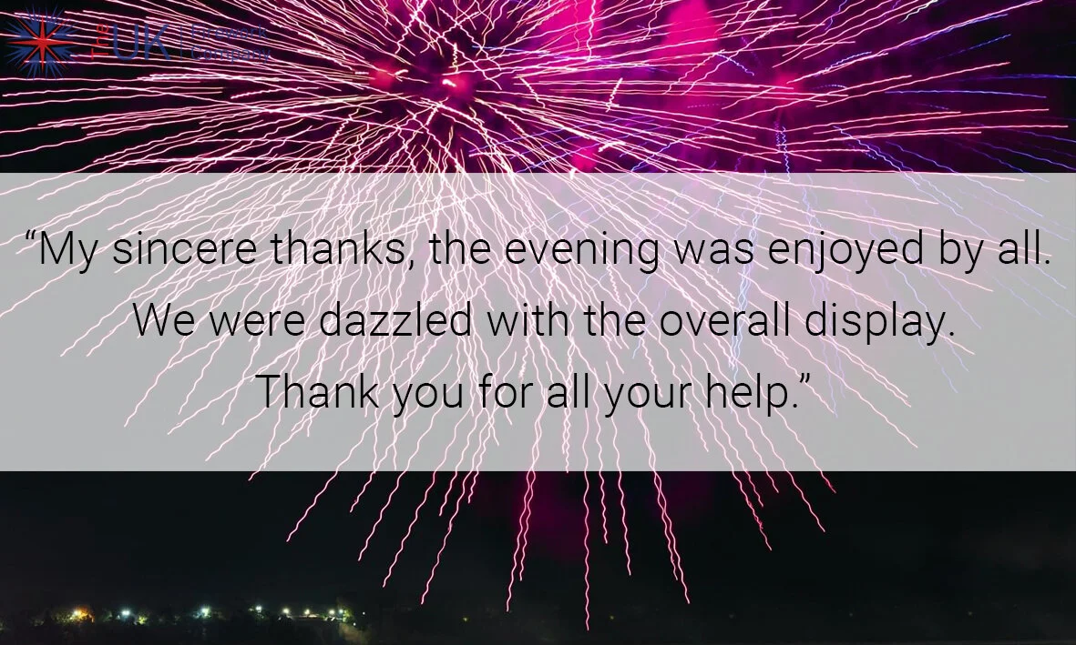 Customer and client reviews received for firework displays and services provided by The UK Firework Company.